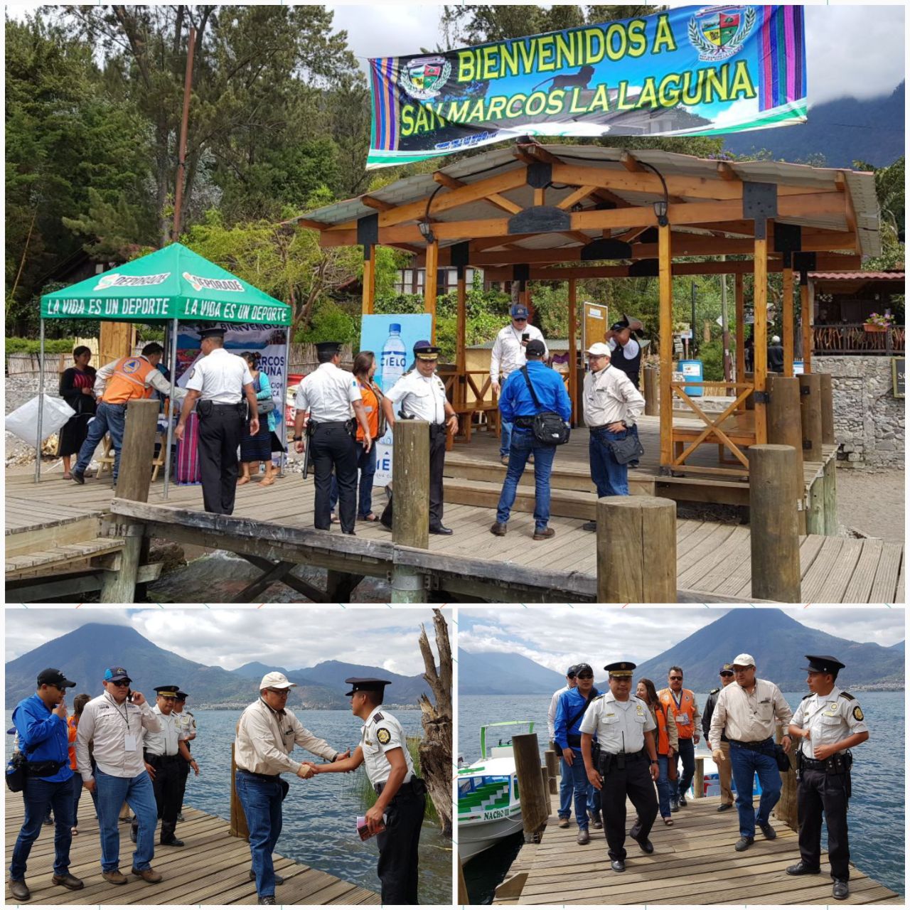 Ing. Luisa Cifuentes de Gramajo Directora Ejecutiva de AMSCLAE realizando monitoreo de playas públicas del lago Atitlán en compañía del Gobernador Deparmental, Lic. Rodolfo Salazar, Capitán Canales de la Capitanía Lacustre Atitlán, Roberto Tobías del INGUAT, Subcomisario López Méndez de la PNC, Dany Chavajay del CODEDE y Cristian Rodríguez de CONRED. La AMSCLAE parte del equipo de apoyo al SINAPRESE 2018